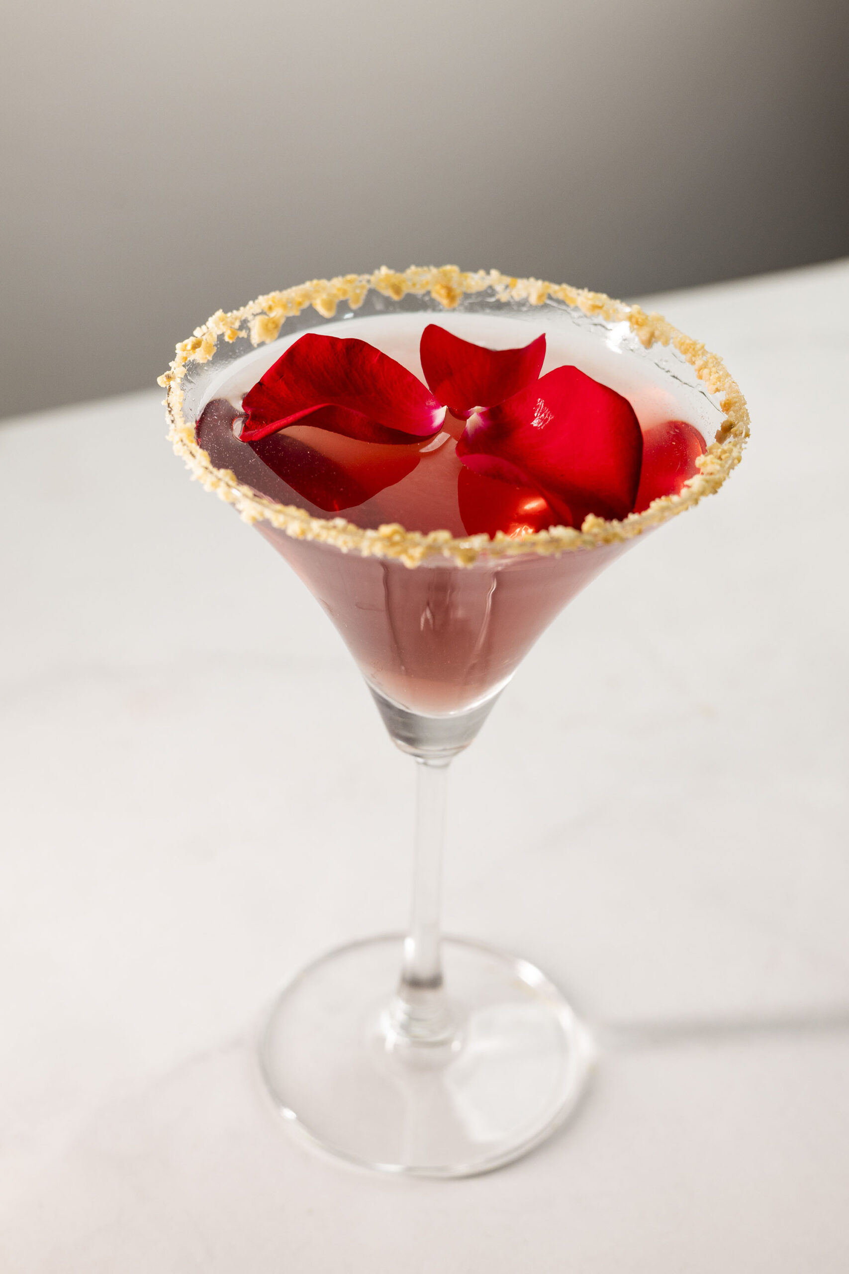 - Dry shake and ice shake all ingredients in a glass.