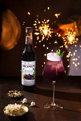 A vibrant, tangy refresher that blends MONIN Spiced Jamun and Glasco Lemon with cranberry and soda—bold, fruity, and the perfect citrus break from all your festive sweet munching.